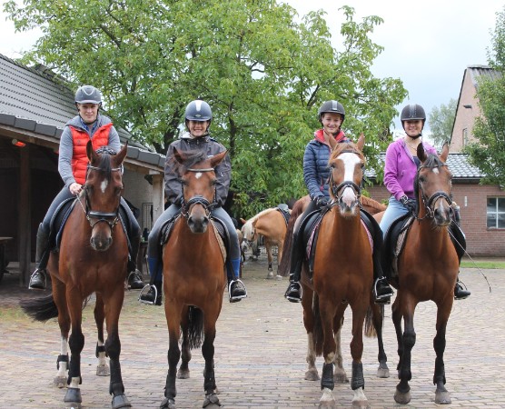 Alle ruiters waren het er over eens, dat het een gezellige rit was, en door het mooie zonnige herfstweer, was het heerlijk om zo met elkaar en de paarden nog een keer door de bossen te rijden.