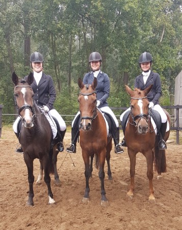 Op de foto, Maaike vd Spijker met SK Wilore, Ingrid van Veggel met Kick Start en Suzanne van Lente met Lise-Lore.